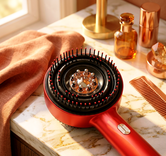 3-in-1 Electric 72 Bristle Scalp Massager & Oil Applicator - Red / Blue Light Therapy Hair Growth Brush with 360° Kneading Massage and Serum Tank